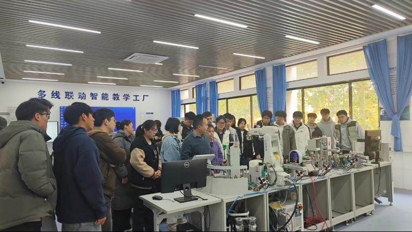 智能制造工程专业的学生进入德州职业技术学院智能制造学院开展专业培训,培训内容涵盖智能控制系统集成与装调、PLC 控制系统的设计与应用、数控铣床编程与加工以及工业机器人现场编程的应用实例。