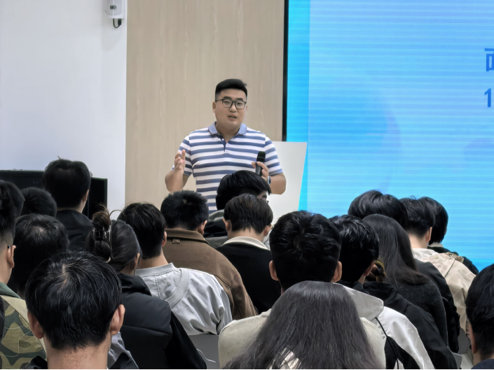 活动现场,豪迈集团团队通过展板展示、现场答疑等形式,详细介绍了企业发展历程、业务领域、岗位需求及人才培养体系。从职业发展路径到薪资福利政策,工作人员耐心为每一位咨询的学子解答疑问,帮助大家深入了解岗位匹配要求,明确求职方向。招聘会尾声,我校的李沛儒老师进行总结发言。他结合企业招聘经验与行业发展趋势,强调了“岗位适配度”与“职业规划清晰度”对求职成功的重要性,鼓励学子们立足自身专业优势,找准定位、主动沟通,同时分享了简历优化、面试应答的实用技巧,为学子们送上针对性求职建议。