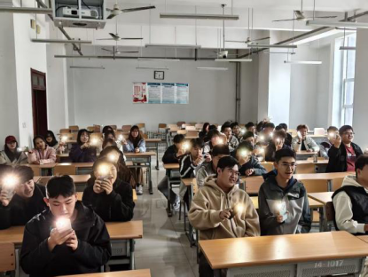 第三环节为“沉浸合唱”。在动人的旋律中,同学们点亮手机灯光,随节奏轻轻摇摆,齐声合唱。