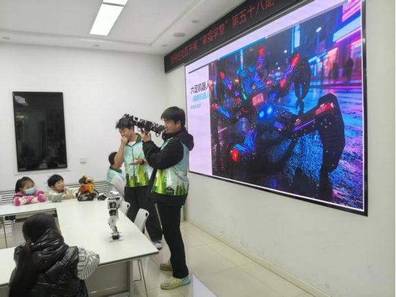 活动伊始,志愿者们并非进行枯燥的理论灌输,而是通过精心设计的趣味课件和琳琅满目的实物展示,构建了一个充满奇思妙想的科技世界。活动在《机器人总动员》的片段放映中拉开序幕。当屏幕上的瓦力切换成讲台上的瓦力机器人时,孩子们的眼睛瞬间亮了。随后登场的是Spiderbot六足机器人,这只机械蜘蛛不仅外表像蜘蛛,更能模仿生物的爬行姿态。孩子们的讨论声此起彼伏。志愿者用浅显易懂的语言,将这些复杂机器的工作原理与生活中的实际应用联系起来,引导孩子们思考科技如何改变未来。面对孩子们天马行空却又充满求知欲的提问,志愿者们一一耐心解答,思维的碰撞让理论的宣讲变得火花四溅。