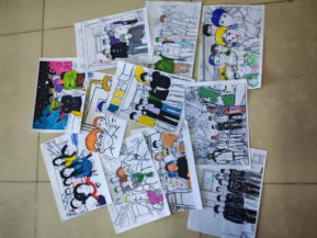 活动现场,“心画宿影”环节率先点燃了大家的创作热情。主持人将各宿舍的二次元黑白合照分发给同学们,大家纷纷拿起彩笔,依照室友的性格特征与专属记忆,为线条勾勒的轮廓赋予斑斓色彩:活泼开朗的舍友被添上明媚的暖色调,沉静内敛的伙伴则配以温柔的冷色系,第二环节“转转杯”,同学们手持两个纸杯,在外杯剪出窗口并绘上脸庞轮廓,内杯则精心绘制出喜怒哀乐的不同表情。转动纸杯时,一张张“变脸”的小人儿跃然眼前,有人转出开怀大笑的模样,有人转出委屈撇嘴的神态,小小的纸杯仿佛成了情绪的万花筒,引得现场笑声不断。