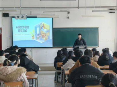 颁奖仪式上,辅导员吕老师对获奖宿舍表示评优评先不仅是对优秀宿舍个体的表彰,更是为了树立榜样、营造积极向上的宿舍氛围,激励全体宿舍争创A级优秀宿舍,同时强调宿舍是大学生活的重要阵地,良好的宿舍环境不仅能提升生活品质,更能助力学业成长与身心发展。获奖宿舍代表也分享了宿舍管理与氛围营造的经验,为其他宿舍提供了可借鉴的方法。