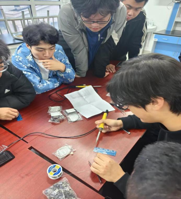 活动前期,主办方精心筹备,不仅提前采购了优质PCB板、USB接口、焊锡丝等器材,还邀请了经验丰富的学长组成指导团队。活动伊始,学长通过现场操作的方式,详细讲解了PCB板的结构原理、焊接工具的使用方法、焊接温度控制技巧以及安全操作规范,重点示范了“点锡-送件-融锡-冷却”的标准焊接流程,帮助同学们快速掌握核心要领。针对新手可能出现的虚焊、连锡等问题,也逐一拆解注意事项,确保每位参与同学都能理解关键步骤。