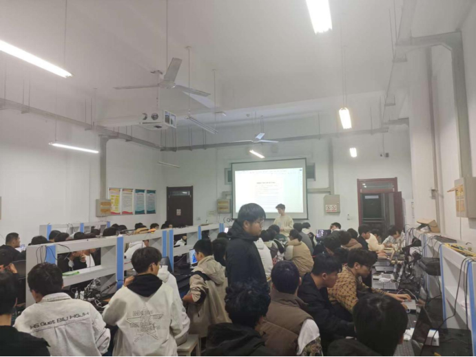 培训内容涵盖C语言基础、单片机硬件结构、外围电路设计及常用传感器应用等核心模块。协会技术骨干担任讲师,结合智能小车循迹、温湿度监测系统、智能家居控制等贴近实际的应用场景,分步骤讲解程序编写、电路连接与系统调试方法。学员们在动手实践中逐步理解单片机工作原理,完成从概念认知到独立开发的成长过程。