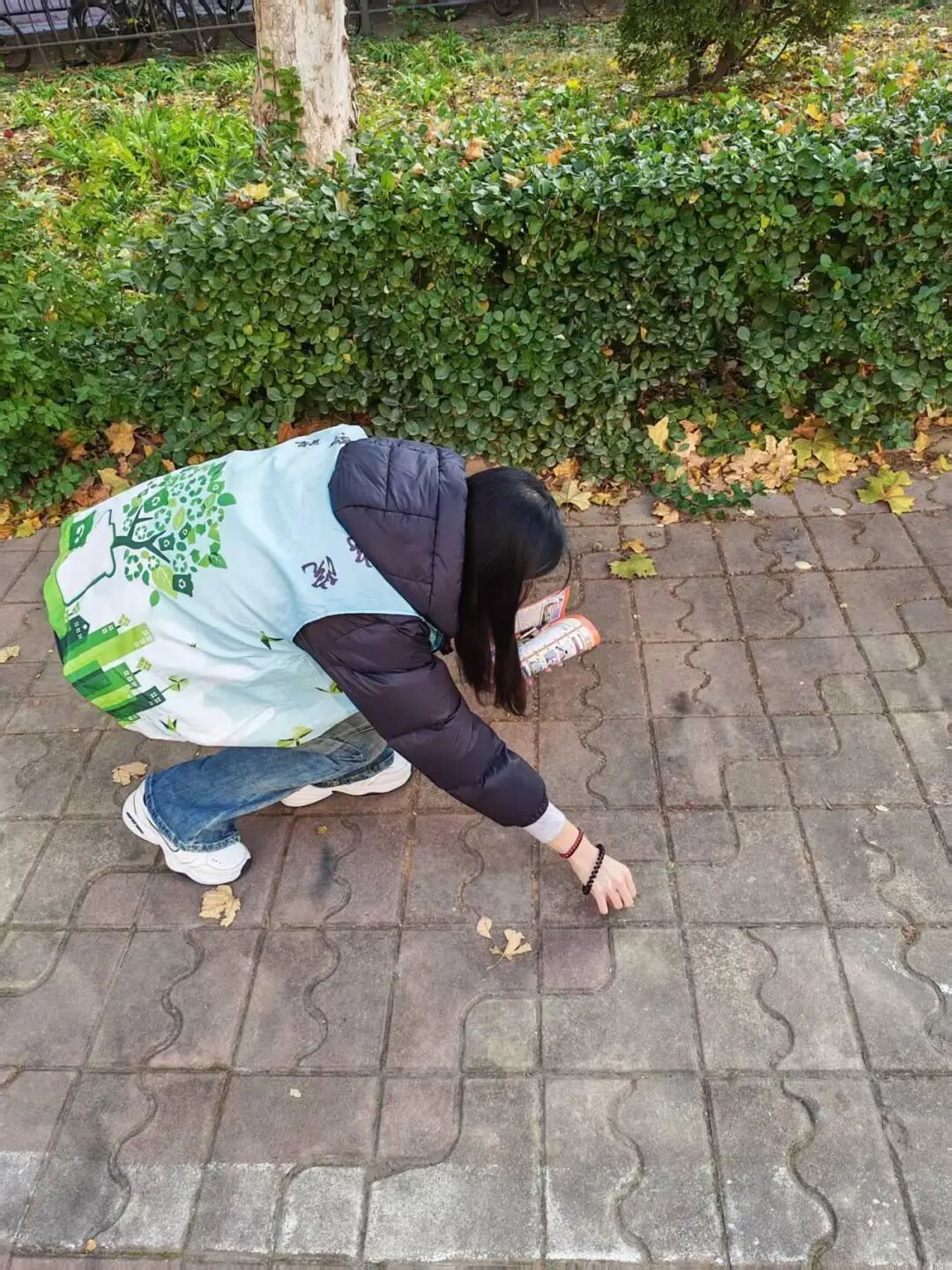 活动现场,志愿者们分工协作、热情满满,有的穿梭在教学楼前,仔细捡拾路边缝隙里的烟头;有的蹲在宿舍区绿化带旁,清理隐藏在草丛中的细小垃圾;还有的在人行道上巡查,遇到即将乱扔烟头的师生,便上前温和劝导,传递“护校爱校”理念。大家相互配合,不放过任何一处卫生死角。