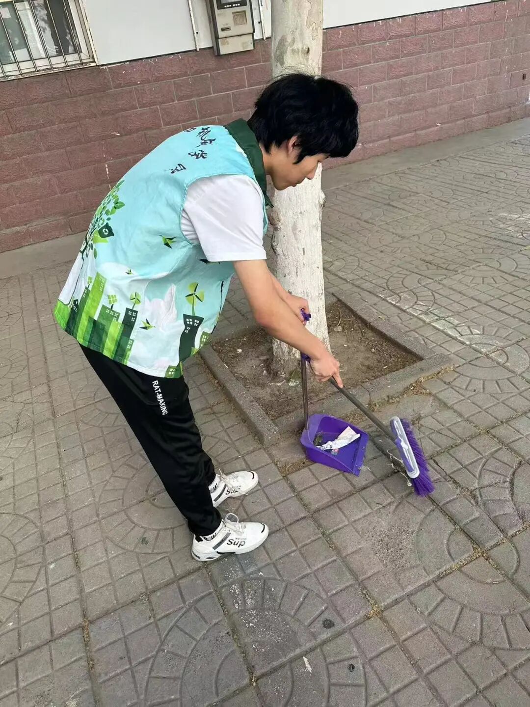 面对顽固污渍,志愿者们毫不退缩,一次次弯腰清扫,即便双手沾满泥土、汗水浸透衣衫,也始终保持着高涨的热情,高效推进清洁任务。
