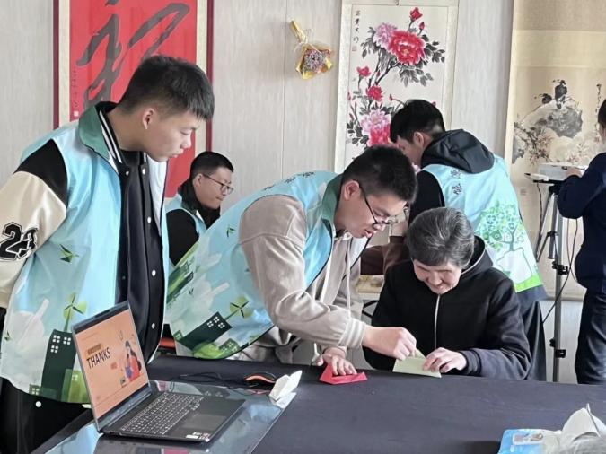 上午10时,志愿者们带着慰问品抵达养老院,迅速分工投入服务。他们有的打扫庭院、整理房间,为老人营造整洁环境;有的围坐老人身旁,倾听往事、畅谈校园趣事;有的陪老人折纸,与老人玩起套圈、猜灯谜游戏,养老院里笑声不断。