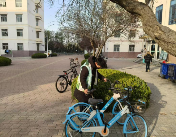 活动现场,志愿者们分工协作,针对楼底共享单车乱停乱放、挤占通道等问题,将零散车辆逐一扶正归位,按指定区域整齐排列,同时清理车筐内的垃圾杂物。对于损坏、无法正常使用的车辆,志愿者做好标记并反馈至校园管理处。经过近一小时的努力,原本杂乱的停车区域变得井然有序,楼底通行通道恢复畅通。