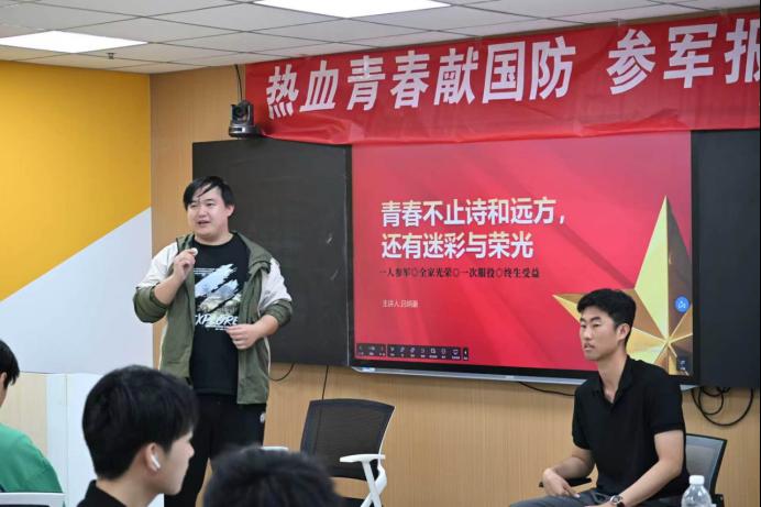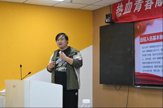 本次宣讲由学院征兵工作的辅导员老师主持,退伍士兵代表受邀到场分享交流。活动紧扣提升征兵质量的核心,既全面普及征兵政策、解读入伍优待,更结合青年学子职业发展需求,引导大家树立家国情怀与职业理想,推动青年学子将个人成长与国防建设、就业发展紧密结合,助力学子在军营中锤炼本领、实现高质量就业。