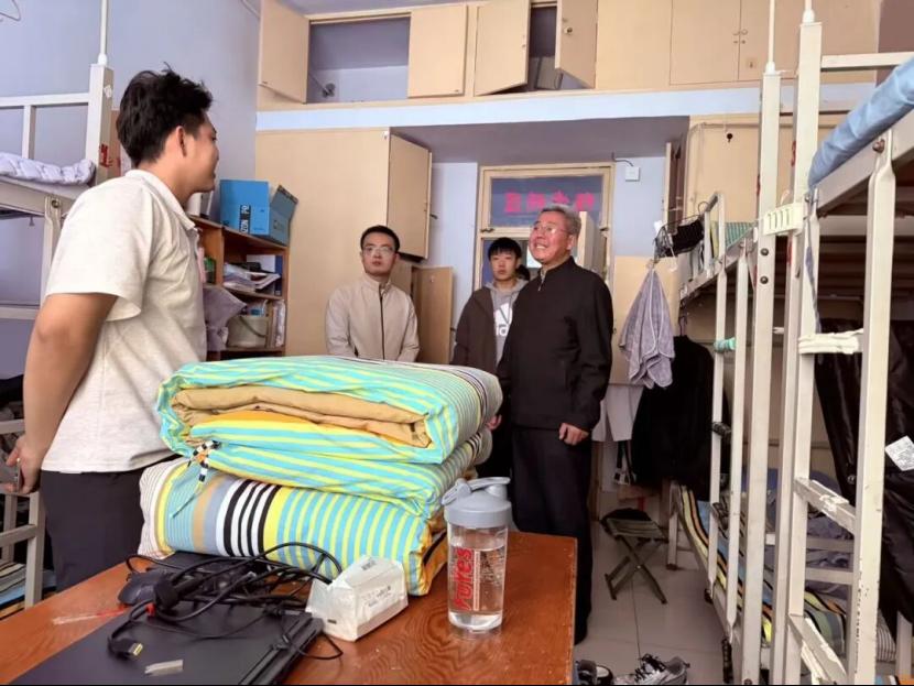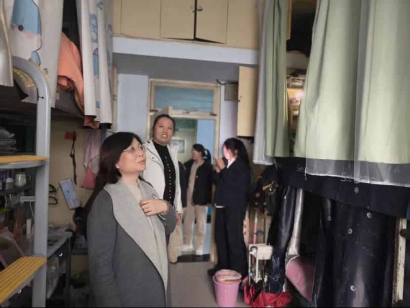 在实地走访学生宿舍时,老师们重点排查违规使用大功率电器、私拉乱接电线、使用明火等安全隐患;同时强调宿舍卫生,提醒学生保持环境整洁,还结合季节特点,叮嘱学生做好个人防护、保持宿舍通风、加强锻炼以维护身体健康,全力为学生打造安全、和谐的居住环境。